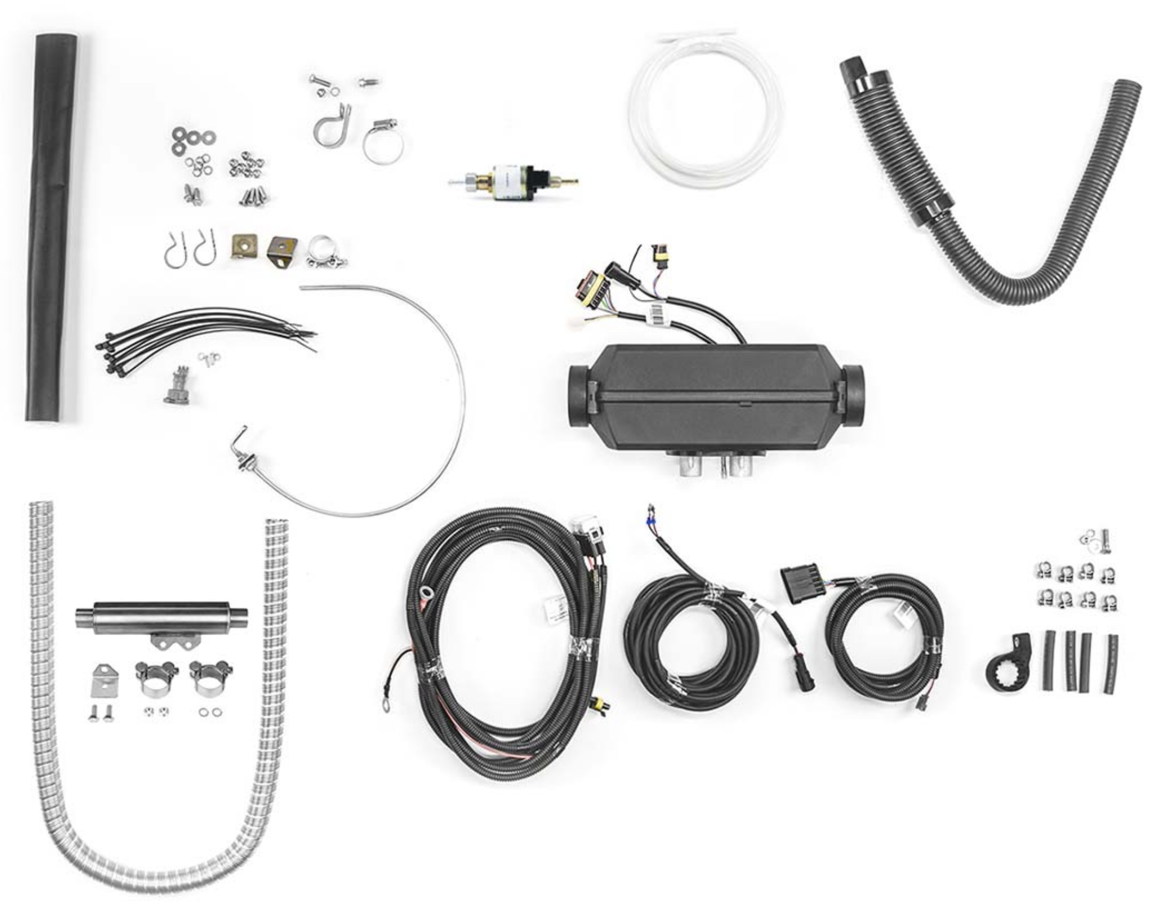 El kit incluye todo para la instalación (ver foto): calefacción, cableado, mando a distancia, bomba de combustible, espadín, tuberías de combustible, silenciador de escape y admisión.
